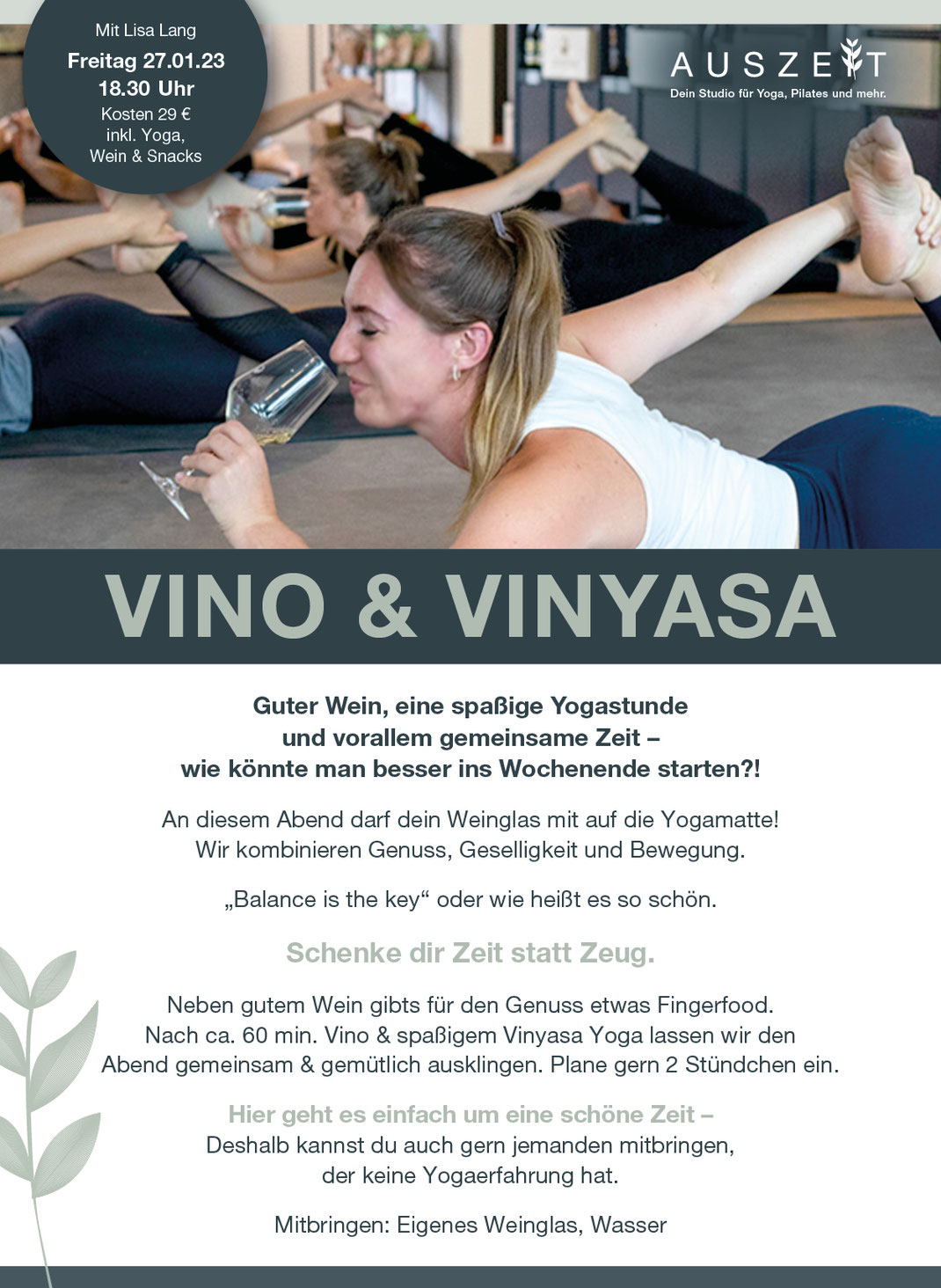 An diesem Abend darf dein Weinglas mit auf die Yogamatte